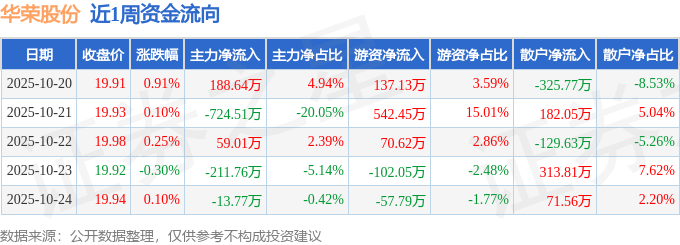 沪深股通持股方面,截止2025年10月24日收盘,华荣股份沪股通持股数为646.15万股,占流通股比为195.0%。